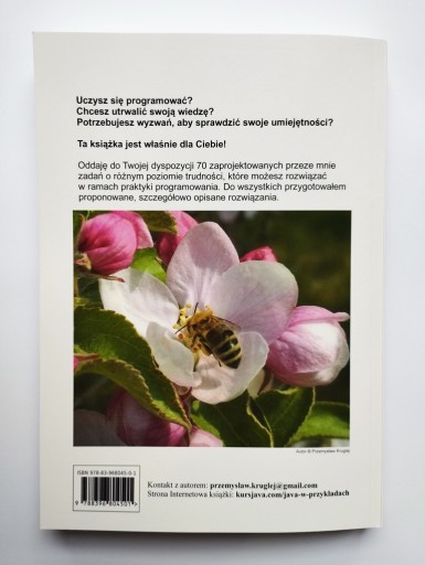 Java w przykładach to książka przeznaczona dla osób, które uczą się programowania od podstaw w języku Java. Zawiera 70 zaprojektowanych przeze mnie zadań, które są dobrze opisane, oraz których rozwiązanie pomoże Ci w utrwaleniu podstawowych zagadnień związanych z programowaniem w Javie.