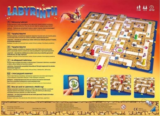 Teraz gra Labyrinth w nowym, urodzinowym wydaniu! Świętuj z nami 35. urodziny, przemierzaj długie korytarze labiryntu, odkrywaj wspaniałe skarby i wygrywaj. Po wyłożeniu karty z labiryntem wszyscy gracze gnają po krętych, zawiłych korytarzach. Przesuwając karty ze ścieżkami, szukamy drogi do upragnionego skarbu. Ale uwaga, jeden ruch przeciwnika może zupełnie zmienić układ tunelu! Ile skrzyń ze skarbami można zdobyć? Kto jako pierwszy obwieści ich prawidłową liczbę?