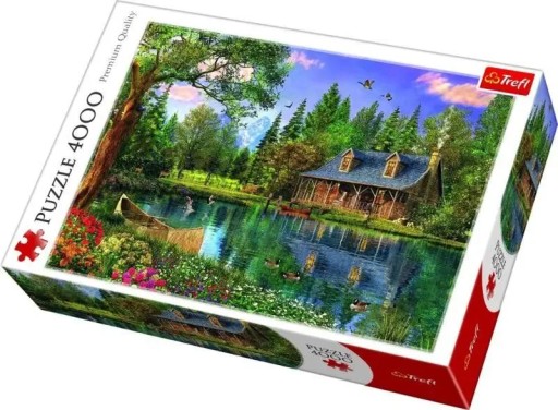 Puzzle 4000 elementów z obrazem przedstawiającym dom nad stawem. Po ułożeniu powstanie obrazek o wymiarach 136x96 cm. Wysoką jakość, nasycenie kolorów i bezpieczeństwo układania zapewnia kalandrowany papier odbijający światło, pokryty ekologicznymi farbami spożywczymi.