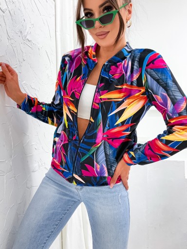 ВЕЛУРОВАЯ ТОЛСТОВКА НА МОЛНИИ БОМБЕР ТРОПИЧЕСКИЕ ЦВЕТЫ ПОЛЬСКИЙ ПРОИЗВОДИТЕЛЬ S/36