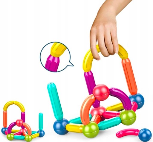 Klocki magnetyczne uczą najmłodszych cierpliwości i precyzji, a jednocześnie ćwiczą ich rączki, wspierając rozwój zdolności manualnych. Klocki edukacyjne magnetyczne pobudzają również percepcję wzrokową, rozwijają kreatywność i wyobraźnię przestrzenną. Jest to zabawka, która sprawdzi się przy nauce kolorów i kształtów, ponadto może służyć także do liczenia i wielu innych zabaw edukacyjnych.