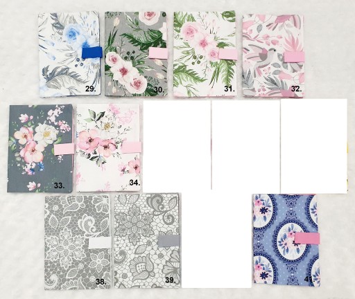 Na innych aukcjach znajdują się okładki bez imienia, z zakładką czy kieszonką na kartę zdrowia dziecka.