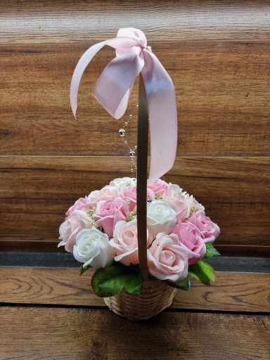 ❤️ Ozdobny kosz, bukiet z kwiatami mydlanymi - piękny prezent oraz delikatnie pachnąca dekoracja dla twojego wnętrza ❤️