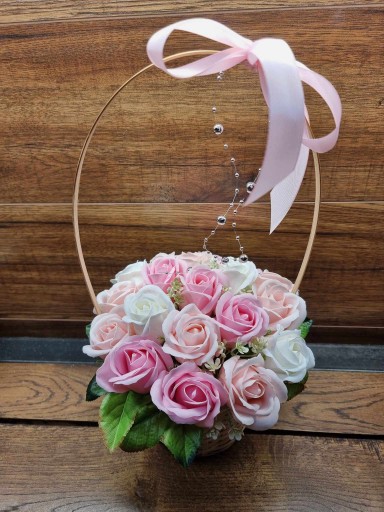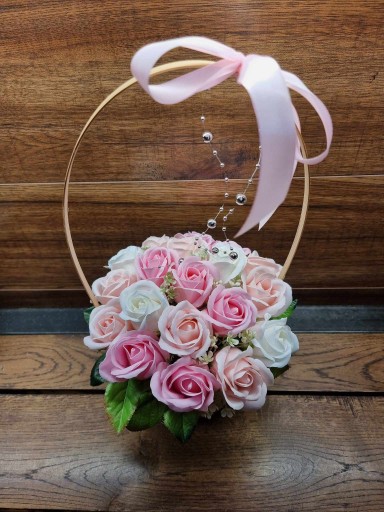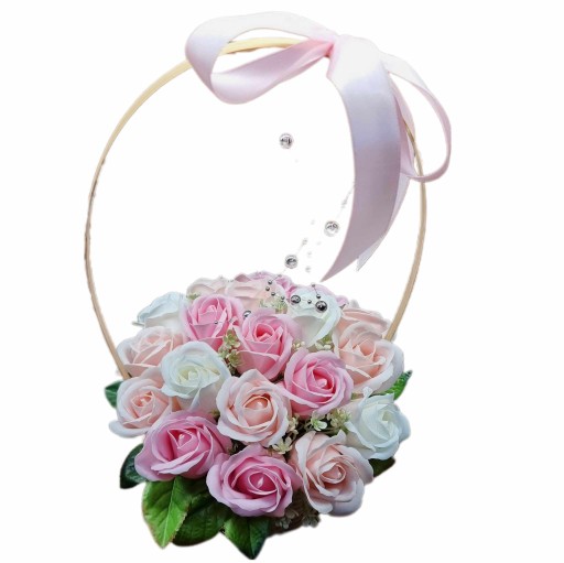 Bukiet kosz z kwiatami różami pachnącymi mydlanymi PREZENT na WALENTYNKI
