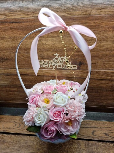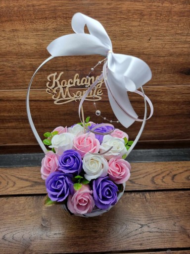Bukiet kosz upominkowy róże kwiaty mydlane PACHNĄCE topper do wyboru