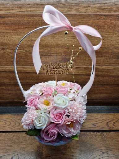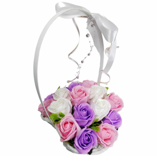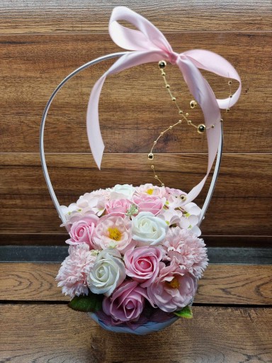 ❤️ Ozdobny kosz, bukiet z kwiatami mydlanymi - piękny prezent oraz delikatnie pachnąca dekoracja dla twojego wnętrza ❤️