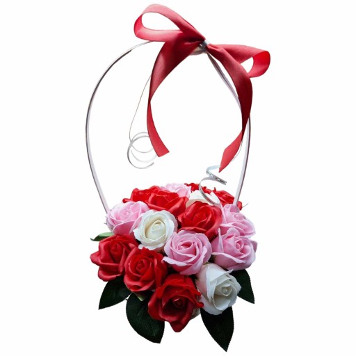PIĘKNY Bukiet kosz z kwiatami mydlanymi róże mydlane prezent na Walentynki