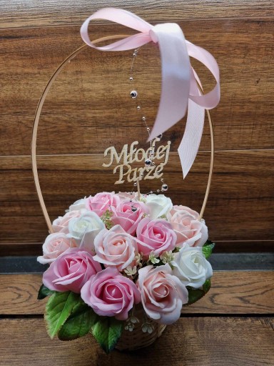 ❤️ Ozdobny kosz, bukiet z kwiatami mydlanymi - piękny prezent oraz delikatnie pachnąca dekoracja dla twojego wnętrza ❤️