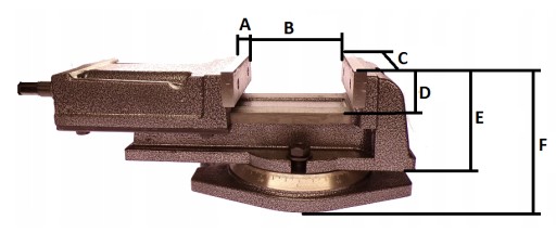 - F - Wysokość od góry szczęk z założoną podstawą 126mm