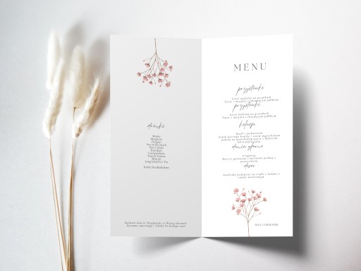Minimalistyczne Menu weselne. Projekt można wykorzystać na różne uroczystości, np.: wesela, chrzciny, komunie, urodziny, jubileusze, spotkania firmowe.