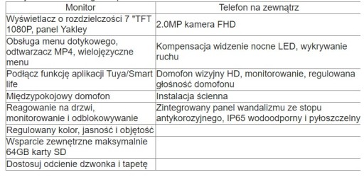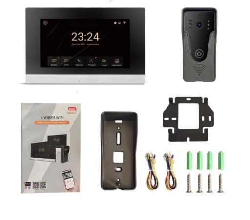 Najnowszy system domofonu o bardzo nowoczesnym wyglądzie o wysokiej rozdzielczości 1080P, obsługa pełnoekranowego menu dotykowego, najnowsza generacja chipów do przetwarzania centralnego i rozwiązań do przetwarzania obrazu, wyprodukowany w Chinach: niższa cena (20% niższa niż podobne produkty), bardziej zaawansowane funkcje. Zintegrowany metalowy panel wywoławczy odlewany ciśnieniowo, odblokowywanie furtki, drzwi, bramy, domofon, interkom, monitorowanie, nagrywanie wideo, alarm wykrywania telefonu komórkowego, zdalne sterowanie aplikacją Tuya. Możliwość rozbudowy o kolejne monitory