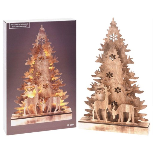 % Светящаяся деревянная елка 16 светодиодов 38 см /Коллекция Home Styling