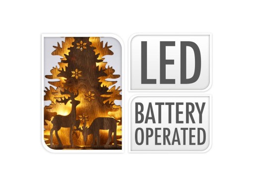 - OŚWIETLENIE LED -Choinkę oświetlają lampki LED o ciepłej, białej barwie - 16 sztuk.Zasilanie: 2x bateria AA 1,5V (brak w zestawie).