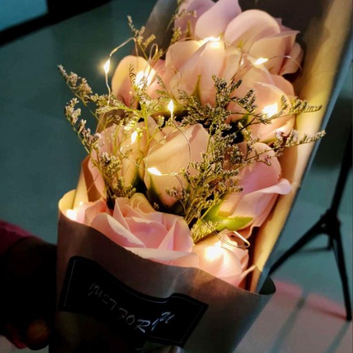 Te bukiety róż prezentowane z lampkami LED, lampki LED mogą być DIY, składane w różne kształty w zależności od potrzeb i mogą być łatwo owinięte wokół róży i innych miejsc, światła mogą zmienić się w 3 różne modele, można wybrać model, aby przejść do nastroju, takich jak świeci się na stałe, powolne zanikanie i migotanie / flash. Świeci ciepłym światłem w ciemności, tworząc romantyczną atmosferę i towarzysząc ludziom spędzającym samotną noc. To symbol twojej wiecznej miłości, wiecznej przyjaźni, długotrwałego szczęśliwego życia.
