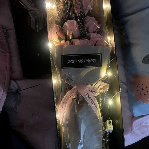 DUŻY FLOWER BOX MYDLANE RÓŻE KWIATY NA PREZENT POD WALENTYNKI LED