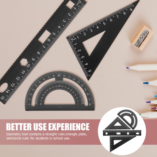 -Narzędzie geometrii zawiera prostą linijkę, trójkątną płytkę, półkolistą linijkę dla uczniów do użytku szkolnego.