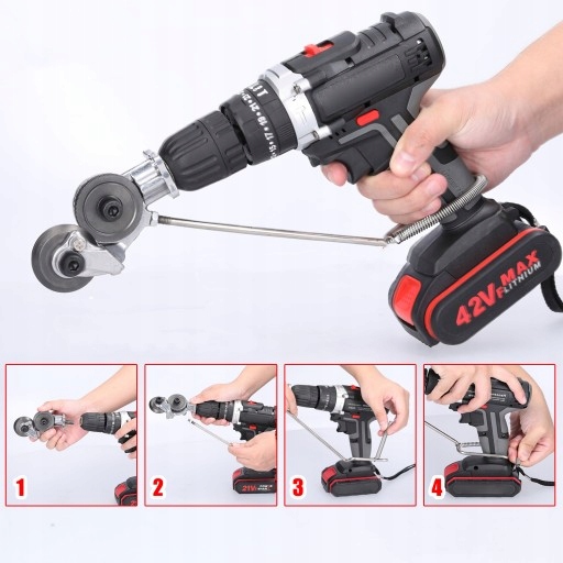 Uwaga: Produkt zawiera tylko zestaw(Końcówka do cięcia blachy), a nie wiertarka akumulatorowa.