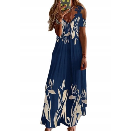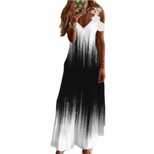 ELEGANCKA DŁUGA MODNA SUKIENKA DAMSKA LETNIA M