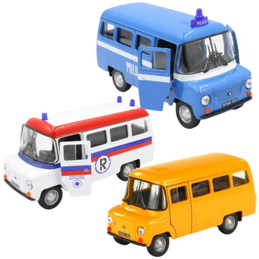 Odkryj świat miniaturowych pojazdów z naszymi ekskluzywnymi modelami metalowymi Welly Nysa 522 w wersji Karetka, Milicja i Zwykła! Te wiernie odwzorowane modele w skali 1:34 to idealny wybór dla młodych entuzjastów motoryzacji oraz kolekcjonerów.