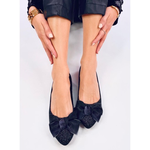 Brokatowe baleriny damskie. Jeśli lubisz błyszczeć to ten model na pewno skradnie Twoje serce : ) Wzrok przyciąga nie tylko ich zgrabny fason ze zwężającymi się noskami, ale także przepiękna kokardka z przodu. Stwórz z nimi bardzo kobiece i efektowne stylizacje...