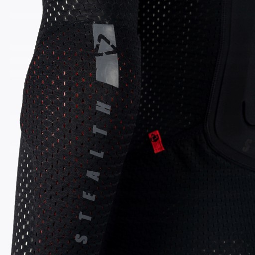 Dzięki ochraniaczowi pleców, ramion i łokci poziomu pierwszego, ochraniacz ciała Airflex Stealth zapewnia pełną ochronę. Ergonomiczne dopasowanie zostało osiągnięte dzięki zaawansowanej technologii Airflex. Kamizelka ma zapinany na całej długości zamek błyskawiczny dla łatwego dopasowania, a na ramionach gotowe na Neck Brace Leatt.
