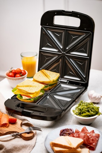 Opiekacz do kanapek XXL - jednocześnie przygotujesz 4 pyszne kanapki (8 trójkątnych sandwichy)