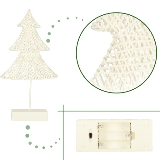 Ozdoba świąteczna w formie choinki wprowadzi bożonarodzeniową magię do Twojego domu! Dzięki zasilaniu na baterię choinkę możesz postawić w dowolnym miejscu, tworząc piękne świąteczne aranżacje. Diody LED w ciepło-żółtym kolorze zapewnią klimatyczne oświetlenie, które sprawi, że zimowe wieczory będą przyjemniejsze.