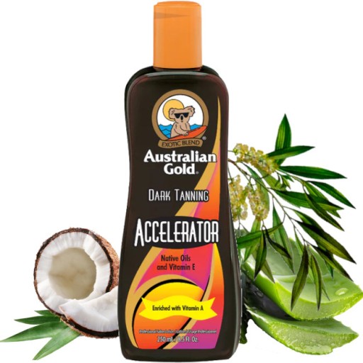 Przyspieszacz opalania Australian Gold, Dark Tanning Accelerator, zawiera bogate substancje odżywcze, nawilżające i ochronne, dzięki czemu promieniowanie UV może uaktywnić więcej odpowiadającej za opalanie melaniny. Zapewnia uczucie jedwabistej gładkości.