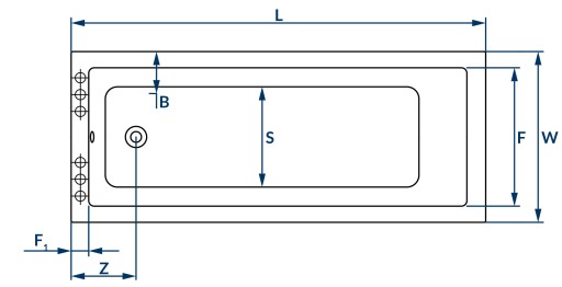 WANNA PROSTOKĄTNA PRZYSCIENNA QUATTRO 170X75 Z SYFONEM BEZ OBUDOWY