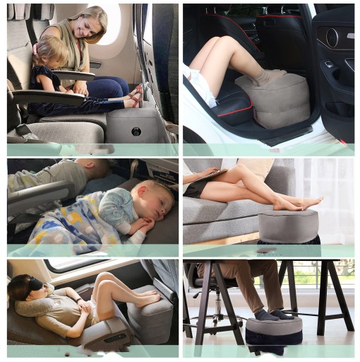 Wszechstronna nadmuchiwana poduszka pod nogi idealnie dopasowuje się do wysokości siedziska samolotu, aby podnieść nogi dla wygody. Wypełnij szczelinę między dwoma siedzeniami tym podnóżkiem samolotu, aby zwiększyć przestrzeń wypoczynkową. Dzięki tej poduszce podróżnej dla dzieci do samolotu dzieci śpią lepiej. Jest to również łóżko dla dzieci do zabawy zabawkami i relaksu. Dorośli mogą również używać podnóżka z poduszki, aby mieć możliwość zmiany pozycji siedzącej, siedzenia ze skrzyżowanymi nogami, zgiętymi nogami.