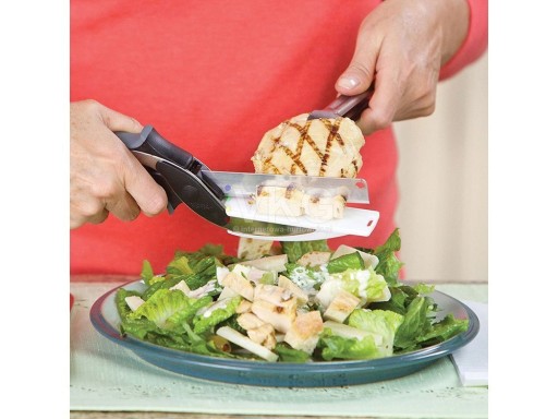 Nożyczki kuchenne z deską do krojenia do rewolucyjne urządzenie w każdej kuchni. Dzięki nim szybko i bezproblemowo przygotujesz śniadanie, obiad i kolację. Urządzenie idealnie nadaje się do szybkiego, bezpiecznego i wygodnego krojenia warzyw, mięs i owoców. Nożyczki pokroją ogórki do sałatki, ziemniaki, ser, jabłko i wiele innych. Posiadają również deskę np. do siekania warzyw. Nożyczki posiadają bardzo ostre ostrze, które bez problemu pokroją szybko warzywa i owoce. Posiadają ergonomiczną i wygodną rękojeść, która jest pokryta miękkim i antypoślizgowym materiałem, dzięki czemu zwiększa komfort w użyciu. Nożyczki posiadają również sprężynujący mechanizm, który ułatwia krojenie lub siekanie oraz specjalne zabezpieczenie, które pozwala na zamknięcie nożyczek i pozostawienie ich w bezpiecznej pozycji. Dzięki swym gabarytom po zamknięciu zajmuje mało miejsca. Specyfikacja techniczna: