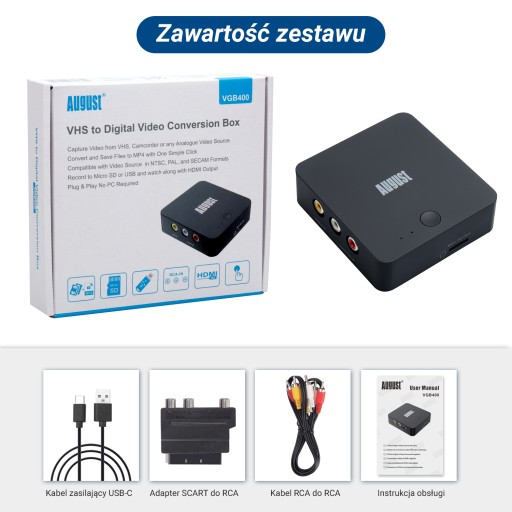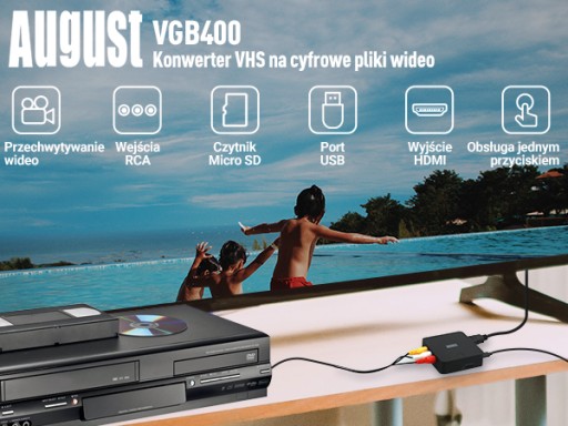 August VGB400 upraszcza proces zapisu materiałów wideo, dzięki czemu każdy może zachować swoje taśmy VHS, nagrania z kamery lub nagrania na płytach winylowych.