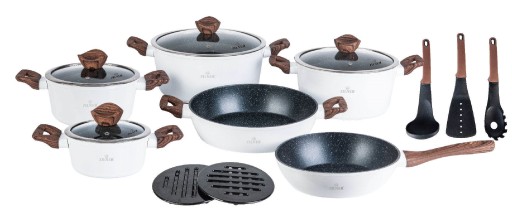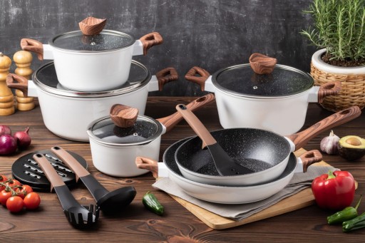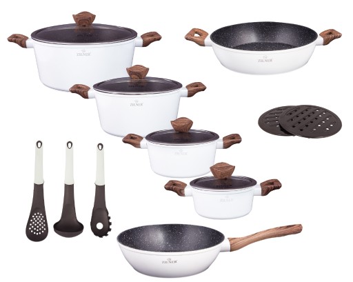 Wysokiej klasy 15-częściowy zestaw garnków z przyborami kuchennymi z nieprzywieralna powłoką granitową firmy ZILNER White Lilly