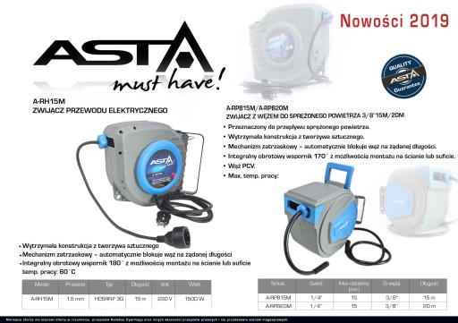 КАТУШКА С ЭЛЕКТРИЧЕСКИМ КАБЕЛЕМ 15 М ASTA A-RH15M
