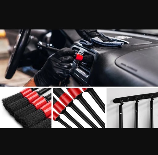 Zestaw pięciu kompaktowych szczotek do czyszczenia wnętrza samochodu. Świetnie nadają się do czyszczenia delikatnych zakamarków w środku pojazdu. Miękkie, nylonowe włosie doskonale zbiera kurz i inne zanieczyszczenia nie uszkadzając przy tym materiałów zastosowanych we wnętrzu. Długie i wygodne rękojeści ułatwiają operowanie pędzlem w wąskich szczelinach. Dodatkowy otwór w uchwycie umożliwia zawieszenie szczotki na haczyku.