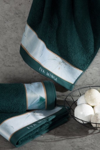 Ręcznik z drukowaną bordiurą szerokość: 70 cm, długość: 140 cm, kolor: ciemnozielony, Gramatura: 485 GSM, Skład: 100% bawełna; część ozdobna: 94% bawełna, 6% poliester