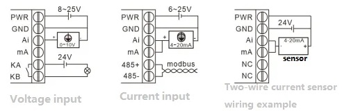 3.Domyślna adaptacja: 0-10V, 2-10V, 0-20mA, 4-20mA. Ustawiając parametr odchylenia i parametr wzmocnienia, można go dostosować do innych wejść w zakresie 0-10V lub 0-20ma.
