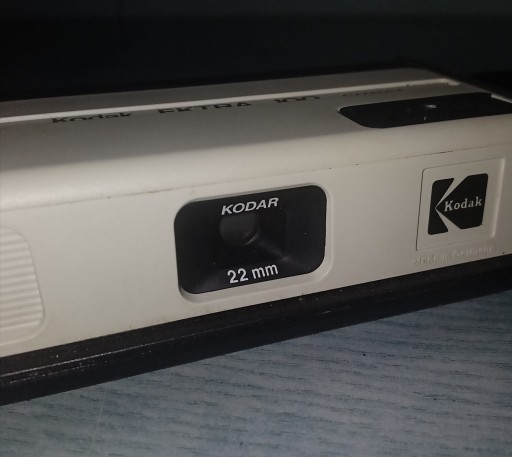 Podstawowy aparat robi zdjęcia za pomocą Flipflash. Aparat ten został wyprodukowany w Niemczech i wygląda identycznie jak EKTRA 90 w jaśniejszych kolorach. Nie mam informacji na temat produkcji tego modelu, ale kod camerosidad znajdujący się pod zwijaczem datuje ten aparat na 07-83. Nazwa: Kodak EKTRA 100 rok produkcji: 1983 Obiektyw: 22mm Kodar Rodzaj kliszy: 110 Cartridge Rozmiar obrazu: 13 x 17 mm. Stan bardzo dobry.
