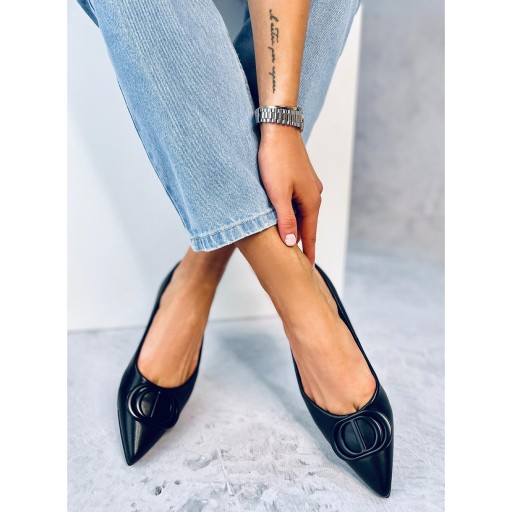 Eleganckie baleriny damskie licowe. Efektowna aplikacja z przodu nadaje tym butom niepowtarzalnego stylu... To wyjątkowy zgrabny model ze zwężającymi się noskami. Powinny znaleźć się w każdej kobiecej szafie! Materiał zewnętrzny - skóra ekologiczna.