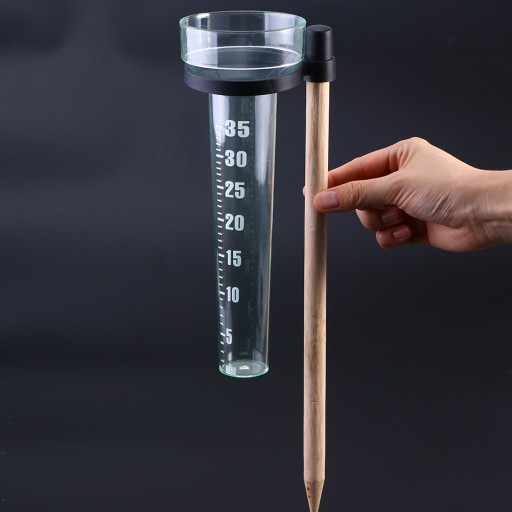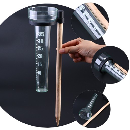 ✅Wykorzystuje się go do pomiaru opadów. Miarka jest oznaczona skalą, która może mierzyć mniej niż 35 centymetrów opadów.