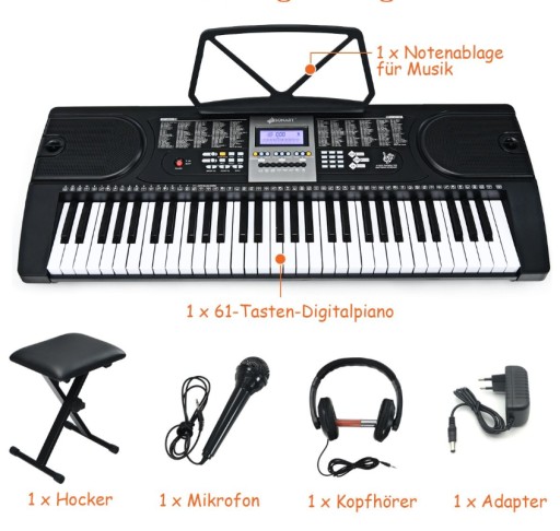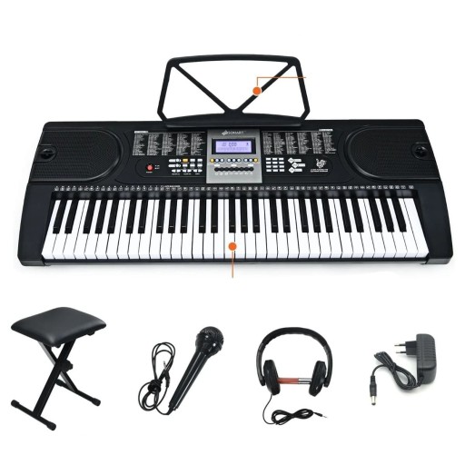 Doskonały instrument muzyczny: z 61 klawiszami, 255 tonami, 255 rytmami, 8 perkusjami i 24 utworami demo, świat muzyki można poznać dzięki temu keyboardowi. Można go również podłączyć do telefonów komórkowych lub odtwarzaczy MP3.