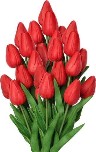 Bukiet zjawiskowych piankowych tulipanów, do złudzenia przypominający naturalne kwiaty. Piękna dekoracja każdego wnętrza, nadadzą wiosennej świeżości i ożywią każde pomieszczenie. Idealna propozycja do salonu, biura, restauracji i innych pomieszczeń. Doskonały element kompozycji florystycznych i stroików na każdą okazję.
