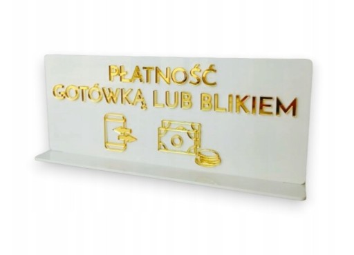 Akrylowa Tabliczka Stojaczek PŁATNOŚĆ GOTÓWKĄ LUB BLIKIEM z lustrzanymi napisami i piktogramami.