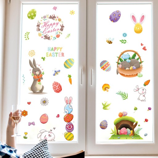 Wesołych Świąt Wielkanocnych Naklejki Na Okno Króliczek Kolorowe Wielkanocne Królicze Jajka.