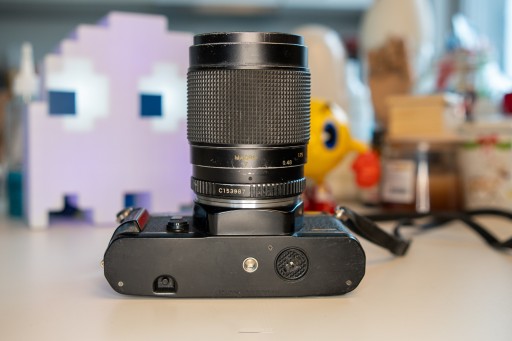 - plus dodatek; obiektyw Yashica MC 28-80mm f; 3.9-4.9 - obiektyw działa dobrze, przydałby mu się serwis [ wymiana smaru i czyszczenie ] Co nie oznacza że jest zatarty. Działa prawidłowo ostrość jak i przysłona, oczywiście posiada drobne paprochy w środku oraz ryski na przedniej soczewce - raczej dodaje jako bonus do boody.