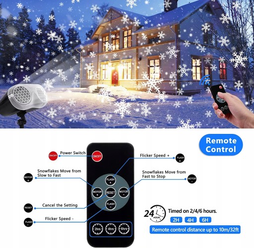 Idealny prezent: Niezwykle imponujący, poruszający się śnieg efektów świetlnych! Wygląda magicznie! Życzymy wiele zabawy! Idealny prezent dla dzieci, ukochanej, rodziców lub przyjaciół. Dzięki naszemu projektorowi LED płatki śniegu możesz po prostu cieszyć się romantycznymi chwilami tej zimy!