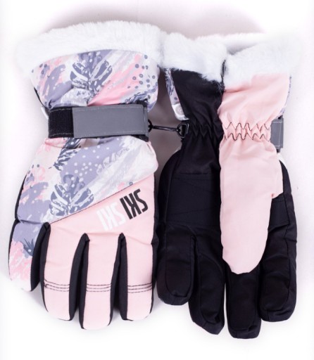 Narciarskie rękawiczki dziewczęce w kolorze srebrno-biało-różowym. Wnętrze rękawiczki wykończone miłym polarem.
