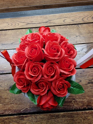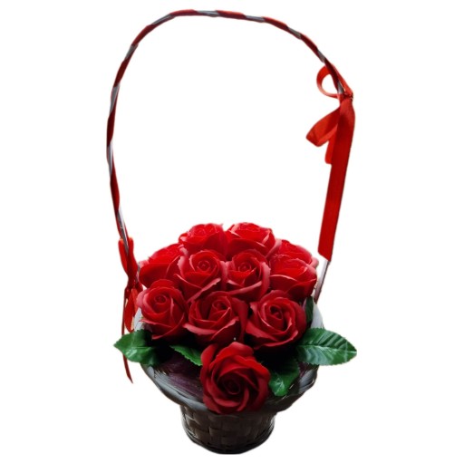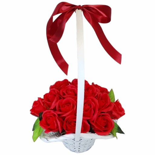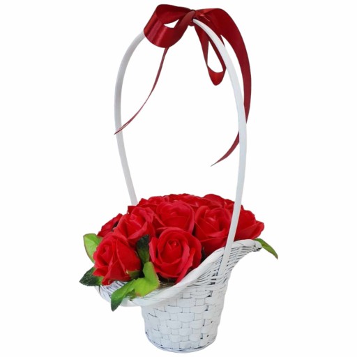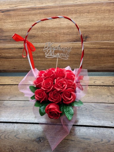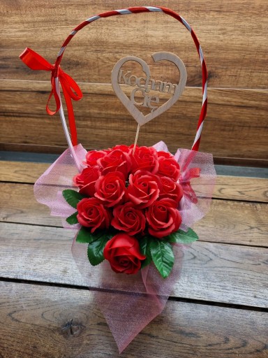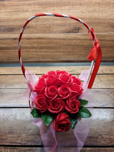 PIĘKNY Bukiet kosz z czerwonymi różami mydlanymi pachnącymi idealny prezent