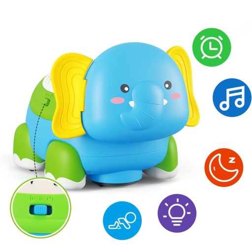 🟤 Press the crawling button, baby toy mits realistic elephant calls and cheerful music and starts crawling with its ears and tail.