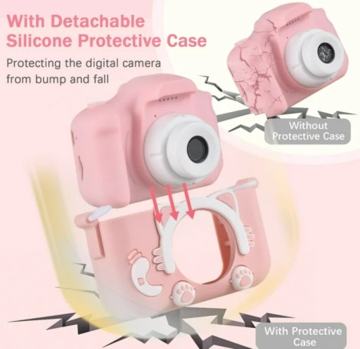 【Najlepszy prezent dla dzieci】 Urocza silikonowa obudowa i jasne kolory sprawiają, że aparat cyfrowy jest atrakcyjny dla dzieci. Doskonały prezent urodzinowy/świąteczny/świąteczny dla chłopca i dziewczynki. Dzieci będą tego bardzo potrzebować.